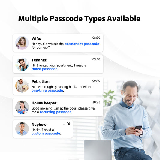 If the power in your home fails, your lock will continue to work without any problem thanks to the fact that it works with batteries.This way you can continue opening the door from the outside or inside without problems.
